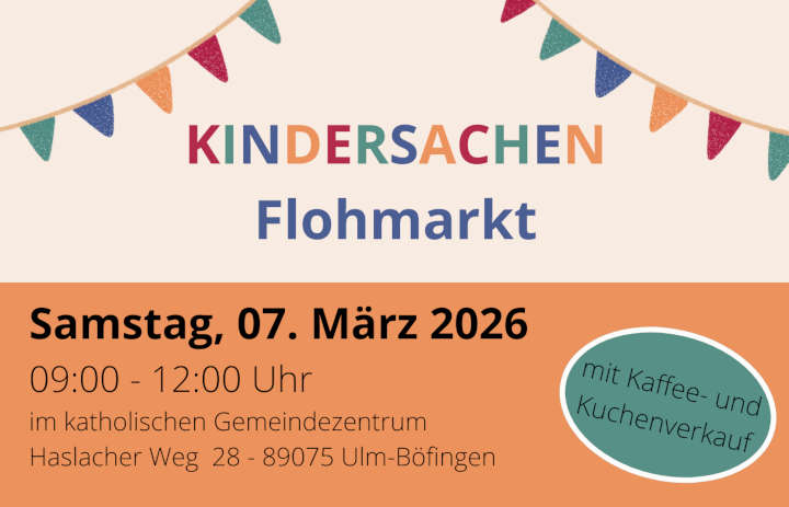 Samstag, 7. März 2026 9-12 Uhr im katholischen Gemeindezentrum Haslacher Weg 28 - 89075 Ulm-Böfingen