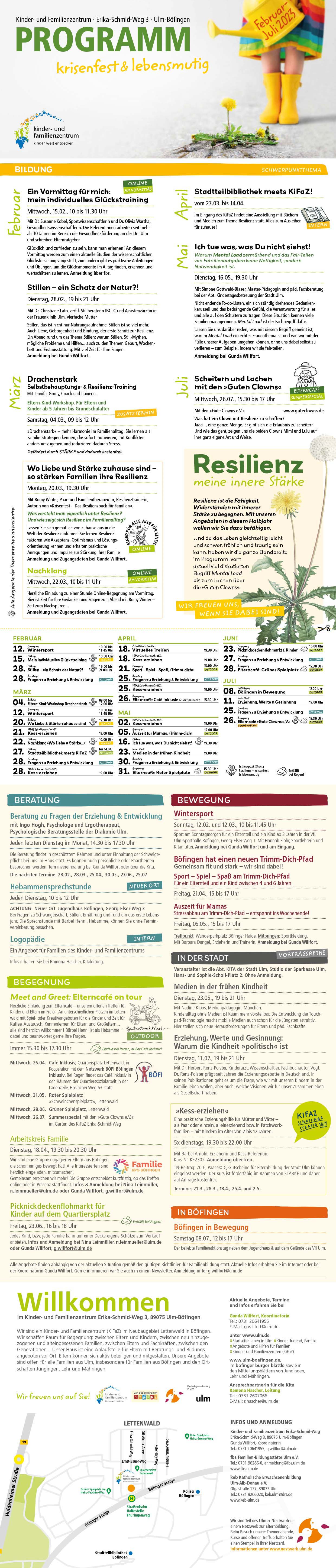 Möchten Sie auf dem Laufenden bleiben und Anregungen zum Familienleben erhalten? Wir nehmen Sie gerne in unseren Mail-Verteiler auf, schreiben Sie uns gerne an g.willfort@ulm.de